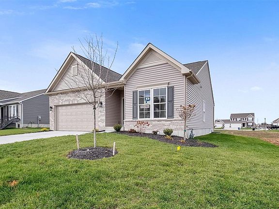 Welcome to 22735 Corbins Crossing at the Estates at Pinckney Ridge in Warrenton, MO. This newly constructed 3 bedroom, 2 bath ranch home features an array of modern amenities. This home offers stainless steel appliances, granite countertops and a deluxe owner's bath, elevating the home’s appeal with contemporary sophistication. Envision the spacious kitchen seamlessly flowing into the dining area and expansive great room, providing an ideal layout for everyday living and entertaining. The owner’s suite, complete with walk-in closet and private bath, offers a tranquil sanctuary. With convenient amenities including a 2-car garage and main floor laundry, plus nearby parks and shopping centers for added convenience, this home is poised to deliver comfort and functionality! *Price reflects current incentive.