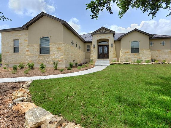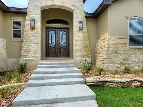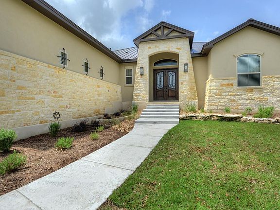 This sprawling single story in the highly sought after New Braunfels suburbs was built and designed by one of Cordillera’s premier, preferred builders. A true high end custom finish inside and out. Designed to be a Hill Country Tuscan exterior with a traditional to transitional interior. Featuring hand hewn travertine flooring, high end engineered hardwood flooring, and carpet in select areas. Custom Cabinetry from Hill Country Custom Cabinets with soft close doors and drawers. High end granite, and appliances. Whole house audio, all the latest technology wiring, alarm pre-wire, upscale lighting, and a media room are just a few of the modern features that abound in this one of a kind. A car lover’s dream, the three car garage is complete with all the prep work to add a car lift. The back patio is designed for entertainment, with speakers, television wiring, outdoor grill complete with an exhaust hood. 2 water heaters with recirculating systems will ensure that you always have plenty of hot water, 15 SEER air conditioners and foam insulation will keep your electric bill low, and a metal roof ensures a lifetime of protection. Quality that will leave you with an instant impression!