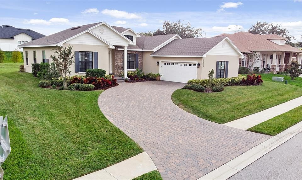 A rare find, this gorgeous 4 bedroom, 2.5 bath home in Coachman Square is better than new! This hidden gem is tucked away in a GREAT south Lakeland location, just off Lake Miriam Drive in a highly sought after school district. It is a small community of fine custom homes built by Hunt Construction that is plumbed for natural gas and even includes its own Pool! A true 4 bedroom completely on one level that boasts an open concept floor plan, and has ADA compliant doors and hallways, boasting a screened in lanai and exquisite finishes throughout. The kitchen and great room are the star of the show and feature the little extras that make it truly custom! The electric fireplace focal wall has built in storage and open shelving, a soaring ceiling with wood plank accents, beautiful lighting, and crown molding. You will love the large Quartz island with microwave... big enough to seat the whole family. Other details include: hard wood cabinetry, a range with pot filler, separate dining area, and walk in pantry. The master suite boasts a glamour shower, dual vanities, and large walk in closet with natural light and custom storage.