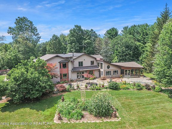 Fabulous, one-of-a-kind, sprawling home situated on 4.5 stunning acres with the Sycamore Creek running through the back of property. 6 bedrooms with a primary suite on the first and second floors. Amazing gourmet kitchen with granite countertops, an island and plenty of cabinets. Formal dining room with french doors and tray ceiling overlooks the backyard. A living room, family room, four seasons room, 3 seasons screened porch, office and laundry room are all located on the main floor. Upstairsyou will find 5 bedrooms and a large art studio. Nature lovers and biology enthusiasts will appreciate the native hardwood forest that surrounds the property along with the native understory. Delight in the many perennials and walking paths. Attached 4 car garage and separate 25x48 pole barn. Home is wired for a generator.
