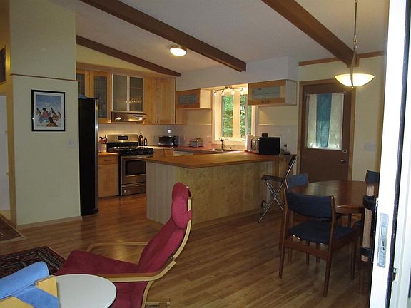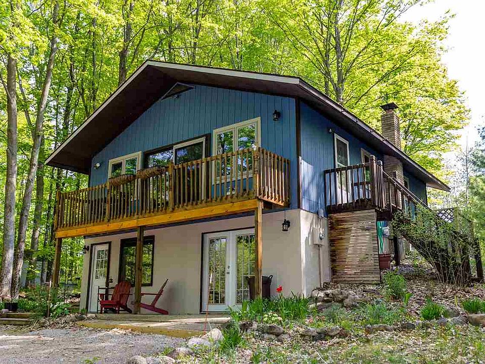 Charming well-maintained 1,722 square foot bungalow with lower level walkout, tucked on a wooded lot just north of Harbor Springs. Close to ski, golf, snowmobile trails, this home offers open kitchen/dining area, back up wood stove, office/work room, and garden area.