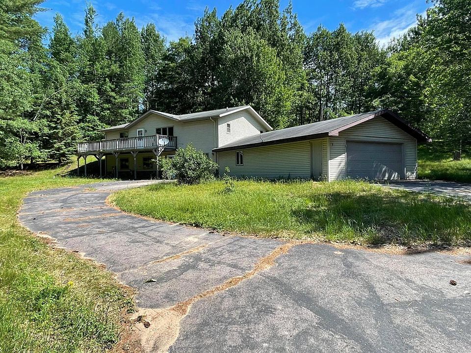 2+ bedroom, 3 bath country home located between Rhinelander and Tomahawk. Home offers an open concept floor plan. Large Living room. Main floor master bedroom with private bathroom and walk-in closet. Full partially finished walk out basement with a 3rd bathroom, family room and Den. 1 car drive under garage with an additional 4 car attached garage. Located on over 2 acres of land in the heart of the Northwoods!