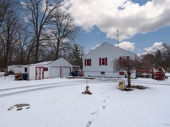 Welcome to this nice, quiet, and comfortable home set on a spacious 2.25-acre lot, offering privacy, functionality, and room to grow. The partially finished basement adds exceptional versatility and includes a bar, one bedroom, a full-size furnished laundry room, tool rack, and a dedicated dry food storage room—ideal for extended living or hobbies. Thoughtful updates include new PVC drainage and plumbing, a new 4" PVC sewer line, a re-piped water main and laundry room, and newly installed toilet and dishwasher. The home has been freshly painted in soft white and gray tones and features comfortable central air and heat. A wraparound driveway provides easy access, along with RV parking complete with electric hookup and sewage drainage. Outdoors, enjoy a detached two-car garage with a wood workshop addition, two tool sheds, gated yard perfect for pets, and colorful flowers that bloom year-round. Front and rear full-size porches, including a rear ramp for accessibility, enhance outdoor living. This property is complete with city water and sewer, natural gas, and included appliances—washer, dryer, refrigerator, and stove with oven—all conveniently located near schools, shopping, grocery stores, and gas stations, in a friendly neighborhood with kind neighbors.