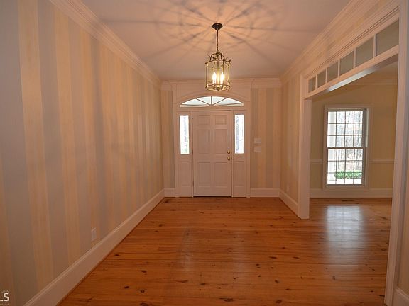 ESTATE HOME WITH GATED DRIVE, 3.97 WOODED ACRES, COVERED ROCKING CHAIR FRONT PORCH WITH STONE FLOORING, HEART PINE FLOORING IN THE MAIN COMMON AREAS, LARGE DINING ROOM, KITCHEN WITH GRANITE COUNTERS, ISLAND AND BREAKFAST AREA, VAULTED AND BEAMED GREAT ROOM WITH STACKED STONE FIREPLACE, BUILT IN BOOKCASES AND WALL OF WINDOWS, OFFICE/LIBRARY WITH BUILT IN BOOKCASES, MASTER SUITE WITH TWO HUGE DRESSING CLOSETS, THE MASTER BATH HAS A JETTED TUB AND SEPARATE SHOWER, TWO HALF BATHS ON MAIN LEVEL, THE UPPER LEVEL FEATURES THREE ADDITIONAL BEDROOMS EACH WITH THEIR OWN PRIVATE BATH AND A LARGE UNFINISHED BONUS AREA FOR STORAGE. THREE CAR SIDE ENTRY GARAGE, MANICURED LAWN.