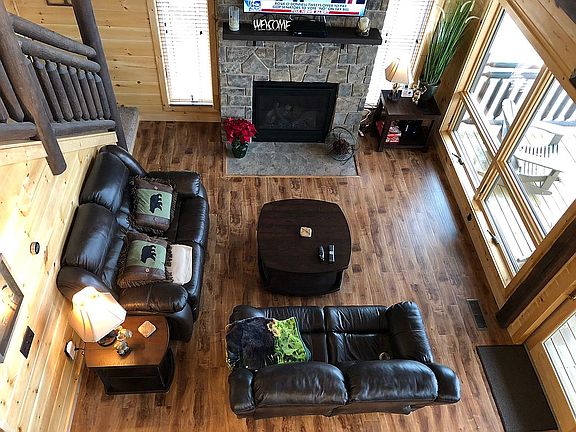 WOW!!! BEAUTIFUL VIEWS, WOOD FLOORS, SPIRAL STAIRCASE, 3 COVERED DECKS, GAME ROOM!! THIS CABIN DOES NEED SOME REPAIRS BUT WOULD MAKE A GREAT RENTAL!