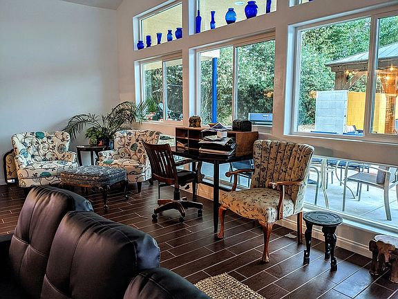 New construction in 2005, expanded with a 1,022sq' addition in 2020. Leased Solar system installed 2015. 1.25 Acre horse property with in-ground pool (installed 2006), covered rear patio, and huge concrete deck/pool are inside 6' cement block wall on 3 sides. New addition is cooled/heated with Ductless mini-split A/C in 3 rooms that can be upgraded to 5 room units. Original section uses forced A/C-Gas heat throughout with attic mounted Duo-pack unit. Includes a 2-speed whole house ventilation fan system that includes Window screens throughout, & a screen door on Master Bedroom patio doors. Vaulted ceilings throughout (except hallways/laundry/2 bathrooms) featuring a 14' high oversized living room ready for entertaining equipped with a wall of windows facing the pool and patio. Separate dining room with bar seating, and oversized kitchen with tremendous storage and full sized island. Wine bar with fridge Huge fenced in chain link front and back yards, and double width concrete driveway with pull-through gates into back of lot. Free standing corrugated roofed 36'X24' open barn in back.