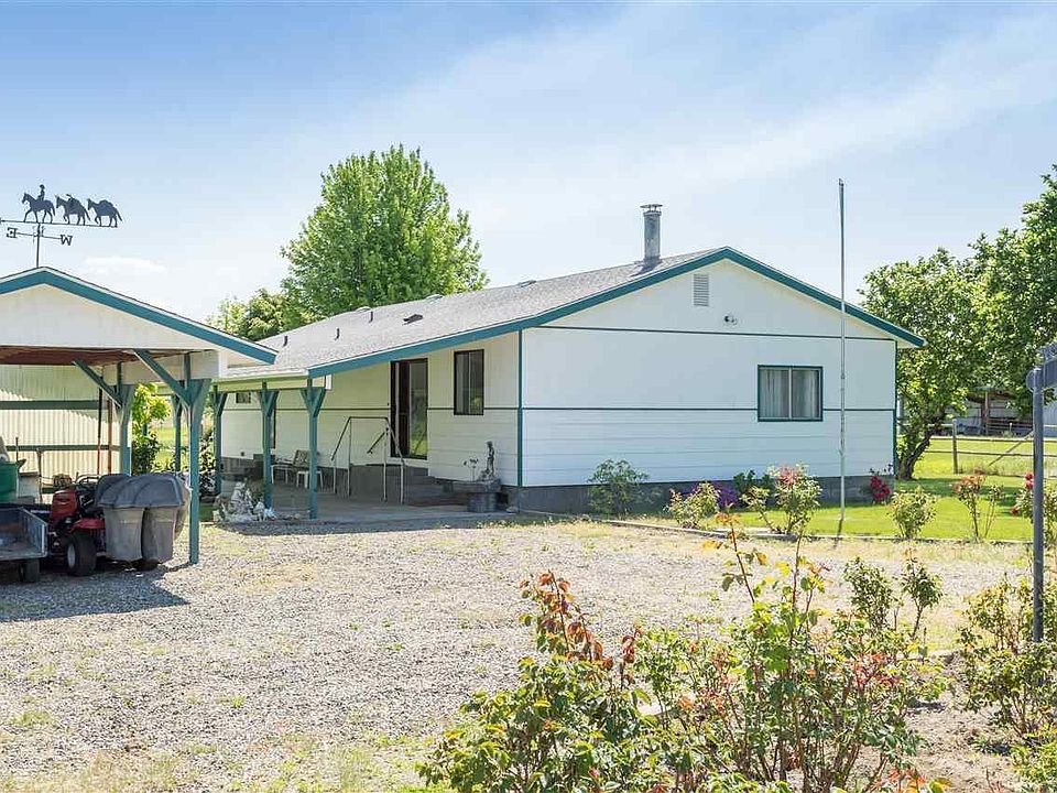 As good as stick built! This single wide was placed on foundation and completely stick framed around making it a 3 bedroom, 2 bath with very large kitchen. Separate family and living room, one with a wood stove for those cold winter nights. Perfect home for someone needing some elbow room. Full acre of irrigated property, very well maintained yard. Large storage building, pump house and covered carport. With a little TLC this could be the perfect rural living for someone!!