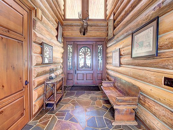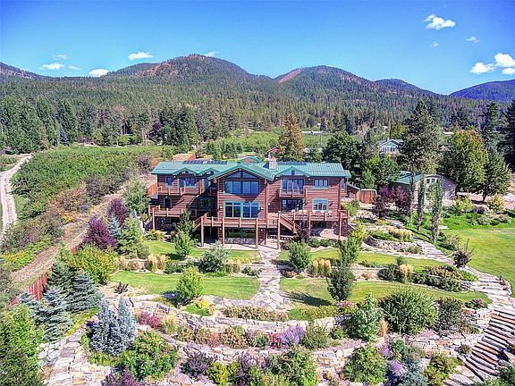 Flathead Lake living at its best in this classic Montana lodge style home with expansive views of the pristine lake and the majestic mountains beyond. The log style home is spectacular inside and out and was a previous Parade of Home winner and offers an open floor plan for entertaining family and friends. Complete with a large chef's kitchen and pantry; dining room; four guest suites; fireplaces; walk-out game room with Western style bar and sauna; and exquisite landscaped gardens with rock work walkway to the waterside kitchen that includes a full kitchen with cooktop, refrigerator, dishwasher, and built-in BBQ grill in a private pavilion with sitting area, firepit, two docks, and pebble beach. A detached four car garage completes the main house. Additionally, the property offers a separate 2,188 sq ft guest house with three bedrooms, two baths, spacious kitchen and master bedroom overlooking the lake and a cozy bunkhouse for those extra summer guests. To top it all off, the property features a large cherry orchard, adding a touch of natural beauty and potential agricultural benefits. Guest House address: 22783 MT Highway 35