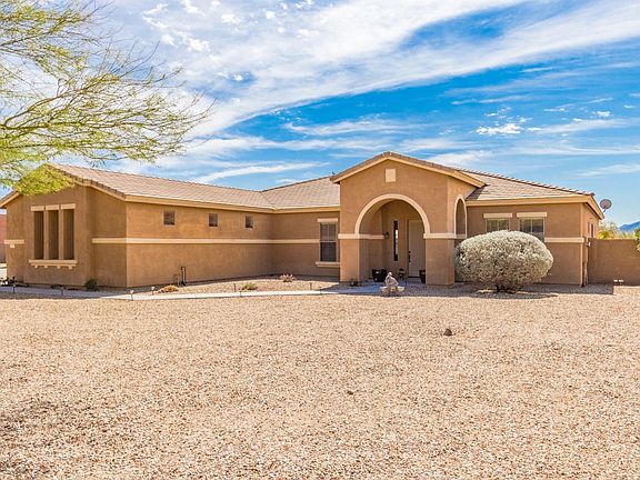 This gorgeous property in Peak View Ranch is just what you are looking for. Split floorplan, 3 car garage, 10' ceilings, tile roof, with 1+ acre of land with block fence and mountain views. The foyer is very inviting which leads directly into the family room that looks out into the backyard. The kitchen has corian countertops with breakfast bar, walk-in pantry and formal dining. The very spacious laundry room has plenty of storage. Bedrooms 2 & 3 have a Jack & Jill bath and the 4th bedroom has it's own separate hall bath. HUGE Master bedroom with 2 closets, double sinks, garden tub and large shower with an exit to the back patio. Citrus & Fruit Trees with drip system and a 12 X 24 above ground pool. This home will sell fast so make your appointment to view today.