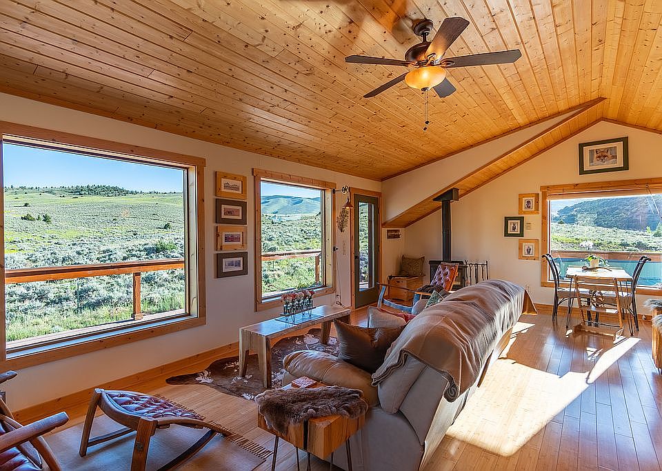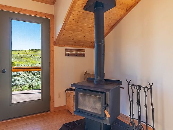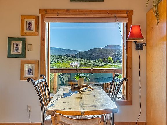 2-story stunner on Baldwin Creek Rd. leading up the eastern flanks of the Wind River range. With a rare, structureless view into the Winds and Baldwin Creek Canyon, this beautiful craftsman wood home offers spectacular views, sunsets/rises, and stunning night sky. An incredible combination of convenience to town and local attractions, with the feel of thousands of mountain acres out your patio door. The home has an open, spacious feel and is well-insulated and efficient. Two certified wood stoves and built in electric fireplaces let you adjust the ambiance and heat source as the seasons change. View pronghorn, elk, deer and an abundance of birds and other wildlife from your deck. A large barn (previously horse) completely insulated storage room, two sheds, and three-sided parking area highlight the outdoor structures. 180 upper Trex deck, with complete concrete wrap patio on lower level. ~4.5 acres, with the south side completely bordering public lands with private gate access to singletrack trails.