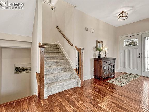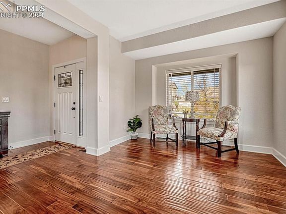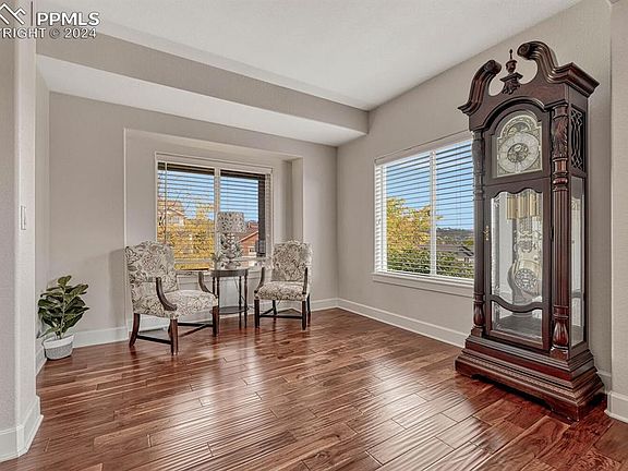 Perfectly situated in the highly sought-after Mountain Shadows neighborhood of Colorado Springs, this stunning 2-story offers 4 spacious bedrooms, 3.5 bathrooms, and a flawless blend of modern luxury & the natural beauty of the Rocky Mountains. Step inside & be greeted by an open, light-filled floor plan featuring rich hardwood floors, vaulted ceilings, & expansive windows that capture the breathtaking Colorado landscape. The main level offers both elegance & functionality, with a formal living room & dining area, perfect for hosting. The gourmet kitchen is a chef’s delight, equipped with stainless steel appliances, gleaming granite countertops, a center island, & ample cabinetry, designed for effortless entertaining. The adjoining family room boasts impressive 2-story ceilings, complemented by a custom stone fireplace. A private main-level office provides the ideal work-from-home environment. Retreat upstairs to the serene primary suite, where you’ll find front-range views, a luxurious en-suite bathroom, and a spacious walk-in closet. Two additional bedrooms on this level offer plenty of room for family, guests, or an extra home office, along with a large second full bathroom. The fully finished basement expands your living space with a fourth bedroom, complete with a walk-in closet & a full bath. The expansive recreation room, featuring a wet bar with counter seating, sets the stage for casual gatherings. For movie nights or game days, the home theater—complete with equipment & surround sound brings entertainment to the next level. Step outside to your private, beautifully landscaped backyard, large patio with a pergola, & firepit. The perfect setting for outdoor dining or evening gatherings under the stars. You’ll love the peaceful ambiance, while still being just minutes away from shopping, dining, parks, hiking trails, & top-rated schools. New carpet & new interior paint! Don’t miss the chance to make this piece of Colorado paradise your own!