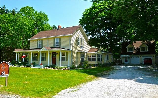 Wonderful modern farmhouse with country charm on 1.43 acre lot across from a nursery, rustic family-size dining room, kitchen with new stove & fridge (2014), chandeliers & country cabinets, inviting vaulted great room (new flooring in â13) w/gas fireplace and skylights, convenient powder room, first floor master suite, impressive full bath with lead glass windows, double pedestal sinks and claw foot tub, first floor laundry, cellar style basement w/2 sump pumps, 3 bedrooms up plus a full bath,44âtrex deck (922 sqft)overlooking yard with 2 outbuildings, apple trees & blackberry bushes, In-law Apartment with LR (15x13), Kit.(16x8), BR (14x13), full bath, C/A & deck over the two car garage (freshly painted)which also offers heat/cooled office space, upgraded electric to 200amp,covered front porch, New HW tank (2/2014)New roof in 2008,New windows in 1991,city water, gas heat, home warranty. Well maintained and a pleasure to show!
