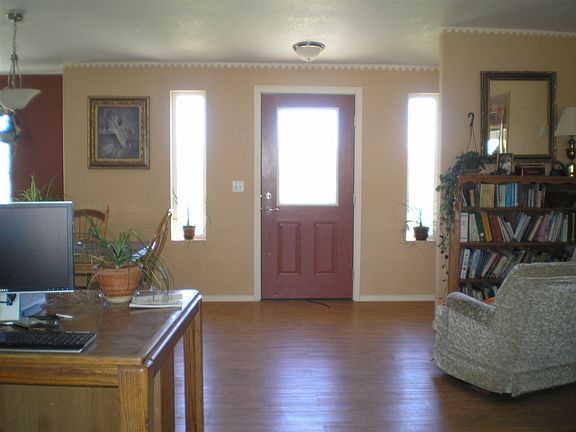 Nice 3 bedroom 2 bath manufactured home with a foundation on 2.15 acres. Home is handicap accessible. Big kitchen with 2 cook stove hookups and 2 sinks. Open living room with beautiful views out the windows. Recently new control panel and pressure tank. 28x50 insulated shop with double pain windows. Shop has 2 enclosed rooms that can be used for an office space or more storage. Pasture area is divided into 3 sections.