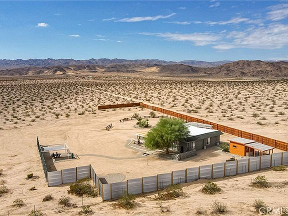 No immediate neighbors, with huge parcels of land flanked by government property protecting the view. Enjoy your own private retreat in the desert as you soak in the sounds of silence, starry nights, & coyotes yipping in the distance. Built to entertain, this home has multiple shaded outdoor lounge spaces, fire pit, space for hot tub/spa off main bedroom, old growth trees and cacti, and more! 10 mins to JT National Park Indian Cove, 15 mins to both downtown Joshua Tree and downtown 29 Palms. Snap up this gem before it's gone!