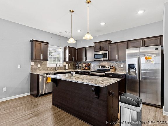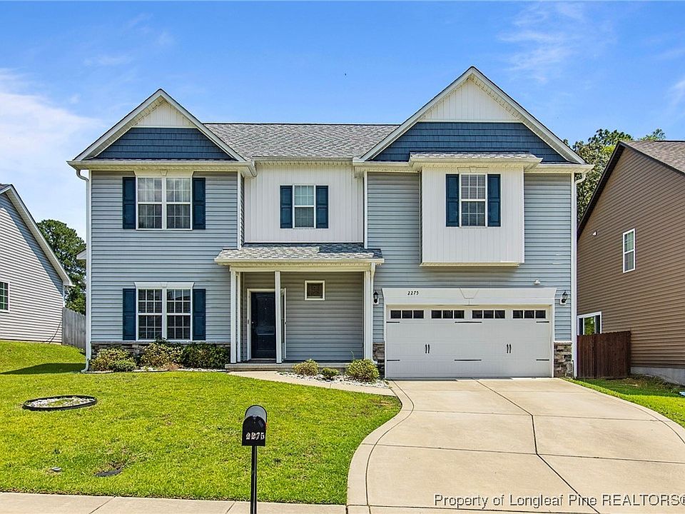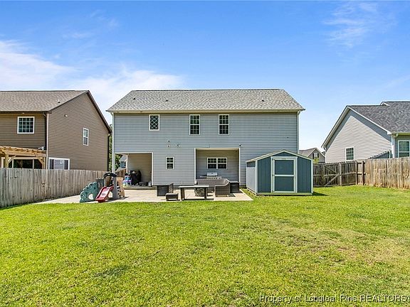 Located in the desirable Jack Britt High School district, this 4 bedroom, 2.5 bath home is a perfect fit for people looking for comfort, convenience, and community. Just a short drive to Fort Liberty, this home offers a welcoming front porch and an open floor plan with durable LVP flooring—great for busy households. The kitchen is equipped with granite countertops, stainless steel appliances, and a central island—ideal for meal prep or gathering with friends. Upstairs you’ll find four spacious bedrooms, two full baths, and a laundry room right where you need it. The primary suite is a relaxing retreat with a walk-in closet, dual vanities, a garden tub, and separate shower. Step outside to enjoy the extended patio with covered areas, perfect for grilling or unwinding. The backyard is fully fenced with a tree-lined view—providing privacy and peace of mind. Welcome home!