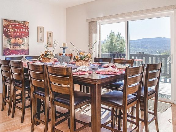 Lake Nacimiento! Views of the lake! Perfect vacation home to enjoy all the lake has to offer. 4 bedroom, 3 bath, oversize 2 car garage with room for boat storage. Entertaining kitchen features stainless steel appliances with granite counter tops, island eating bar plus large dining area. Kitchen opens onto spacious living room has freestanding wood burning fireplace. Kitchen and living room flow onto oversized front deck with views and space to entertain. Master bath features jetted tub and glassed in shower, dual sinks and 2 closets. The home has 2 decks in the rear and 1 in the front. Home is located in a private gated community with guarded entrance, private lake access and launch ramp, including clubhouse, pool and Security.