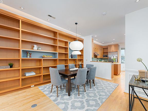 Experience the epitome of urban living in the enchanting Alphabet District! Tucked away between the vibrant NW 23rd and NW 21st, this meticulously designed townhouse offers a seamless blend of convenience and luxury. Notably, there are no HOA dues, adding an extra layer of exclusivity to this remarkable property. Upon entering, you'll be greeted by a versatile den/office on the main floor, providing the perfect space for work or relaxation. This room has it's own HVAC & soundproofing. The attached mudroom, conveniently located off the garage, boasts an abundance of storage and even includes a Thermador wine + beverage coolers for the ultimate in-home entertaining. The main level presents a harmonious great room concept, seamlessly connecting the kitchen, dining area, and living room. This design creates an inviting and open living space that is ideal for both everyday living and entertaining guests. A testament to quality, this residence underwent a transformative remodel by Hammer and Hand in 2015, ensuring top-notch craftsmanship and design excellence. The kitchen features 4 x 8 Moda Vetro glass backsplash tiles, polished Pental Quartzstone countertops, and custom built fir cabinets. One of the standout features of this home is the exquisite clear grain fir built-in shelving, adding a touch of elegance and sophistication to the living space. Upstairs, you'll discover a stunning primary suite with an attached bathroom and a generously sized walk-in closet. The second bedroom offers captivating north-facing views. This townhouse is truly a masterpiece of urban living, offering the best of Portland's Alphabet District right at your doorstep. Seller open to carrying contract and lower than market rate for right buyer. [Home Energy Score = 6. HES Report at https://rpt.greenbuildingregistry.com/hes/OR10221605]
