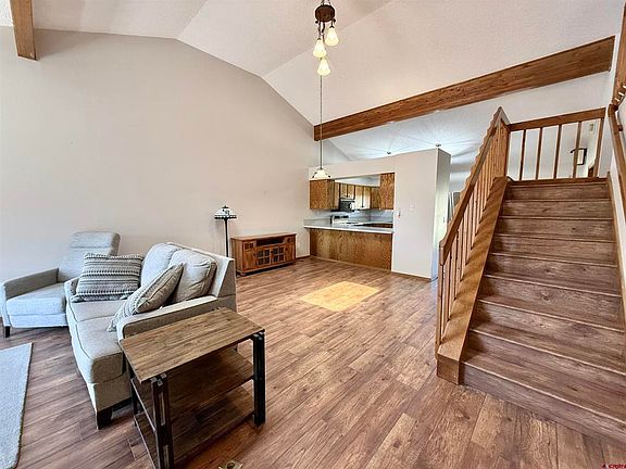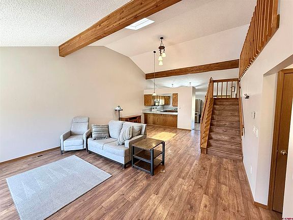 Well cared for townhome unit with 2 bedrooms, 2 bathrooms plus an additional loft. This home features recent updates over the past few years that include new interior paint, new laminate flooring, new light fixtures and plumbing fixtures, new blinds including a remote-controlled blind on the skylight, and resurfaced kitchen and bathroom countertops. The bathroom tile and tubs were also resurfaced. This townhome backs to the golf course and has excellent San Juan Mountain views from the front. The HOA takes care of lawn maintenance and snow removal of greater than 4 inches. The HOA fee also covers Water, Sewer, Trash and Recycling. Come take a look at this great "Lock and Leave" property.