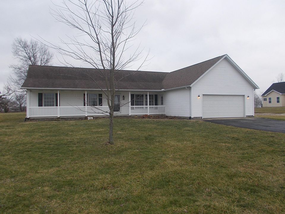 Beautiful ranch home in great location at edge of Washington C.H.! Large open kitchen and living area and big utility room. Awesome master suite with walk-in closet and garden tub. Covered front porch and patio on rear. Check this one out before it's gone!