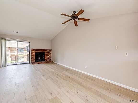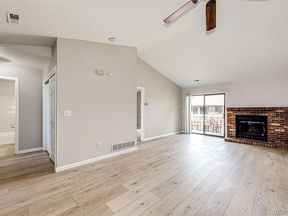 **2 Bedrooms AND 2 Bathrooms** These gems do not come on the market very often! Brand new interior paint and all new flooring, with updated lighting throughout. A wood-burning brick fireplace and ceiling fan make the large living area so inviting. The kitchen is bright with so much natural light. All appliances are included, even the like-new washer and dryer! There is so much closet space in this home, including a walk-in closet in the primary bedroom. The large deck overlooking the park-like grounds has a lockable storage closet. This home includes a reserved covered carport just outside the unit, and a community swimming pool. You can easily walk to shopping, restaurants, and public transportation. You will be close to Buckley Air Force base, hospitals, schools, and DIA. **HOA special assessment is repairing the balcony concrete, paid in total by seller at closing**