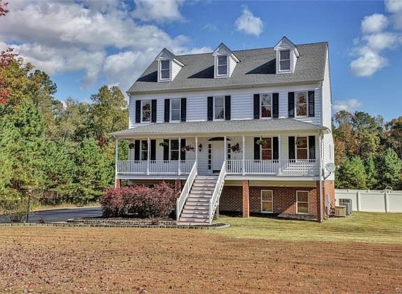 Stately renovated 5 bedroom/3.1 bath Colonial with an inviting front porch is located in Eastern Powhatan County on 4.5 sprawling acres! The main level is bright & sunny boasting rich hardwood floors, crown moulding & chair rail! Dramatic arched doorway from the foyer leads into the formal dining room with an ornate hardwood floor design & tray ceiling. Functional kitchen offers an island, wall oven & access to a laundry area convenient for everyday living. The oversized family room has a gas stone fireplace & gorgeous unique split stairway! Enjoy spending time in the vaulted breakfast area with a plethora of windows overlooking an oversized deck & an in-ground swimming pool! Master bedroom is spacious with a walk in closet & ceiling fan. Adjoining master bath offers dual vanities, jetted tub & a newly installed shower. Three additional bedrooms on the second level are spacious & serviced by a full bathroom. Full finished walk out basement offers a large recreational area, gas FP, full bathroom & a fifth bedroom or study. Other features include a walk up attic, security system, generator, fenced area & 2 car garage. You must see this immaculate well maintained home today!