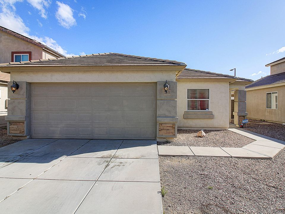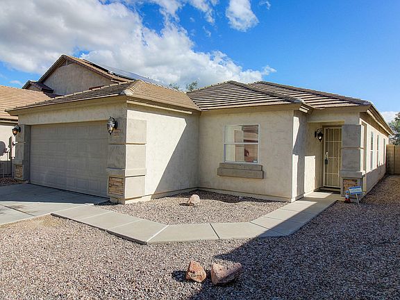 This 4 bedroom, 2 bath home faces north on a lovely tree lined street in Buckeye. Inside, the home feels spacious thanks to the open design, neutral tiled floor and large windows. The ample master bedroom has an attached bathroom and a big closet with built-in organizers. All bedrooms have neutral carpet and ceiling fans. The kitchen opens into a generous shared living area, a wonderful place for entertaining. It has substantial storage with light wood cabinets and a pantry. The backyard has plenty of room to create the perfect play and relaxing space. A laundry room and two car garage add to this home's appeal. Great outdoor areas, including Sundance Park and Skyline Regional Park, are just minutes away.Leased Solar with monthly payment of $140 a month and avg electric bill $30