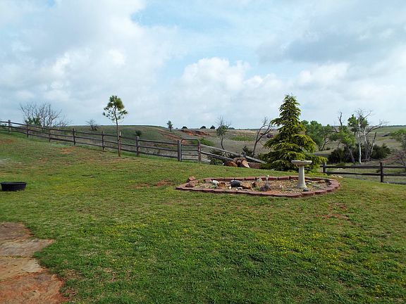 Country Living here it is..This home was built in 2008 and sits on 56.07 acres with a gorgeous view on every side. This home has a great open floor plan with 3 bedrooms and 2 full bathroom, new wood flooring and carpet in the bedrooms. Gorgeous kitchen with a nice large island with storage, dining room, walk around porch on the front, storm shelter, 2 barns, loafing shed and storage shed, windmill, water well. Out of city limits but real close to town. This is a must see..