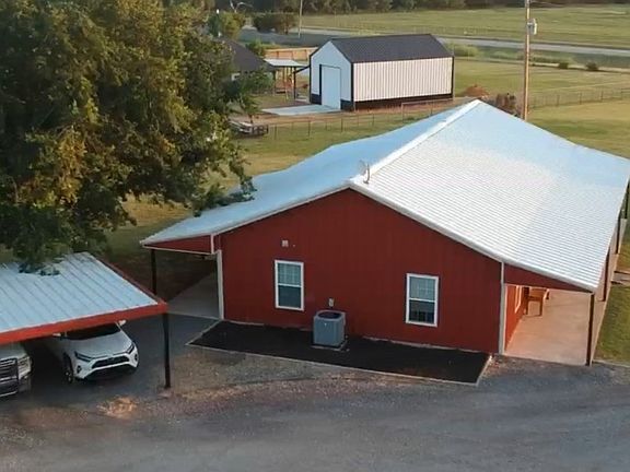 Truly one of a kind piece of property sitting on five prime acres. Perfectly manicured with large oak trees, pipe fencing and a pond. This home features a 3 bedroom, 2 bath. Split bedroom design. Stainless Steel appliances.Custom title shower and large soaker tub. Cathedral ceilings. House is foam insulated. Top notch security system. Covered front and back porches. The shop is amazing and fully insulated. It's 40 x 60 with a 20 ft awning off the side. It has a office with a full bathroom that could easily be a bedroom and bath. The office in the shop has central heat & air. Just on the outskirts of town with Highway frontage. Don't let this one get away.