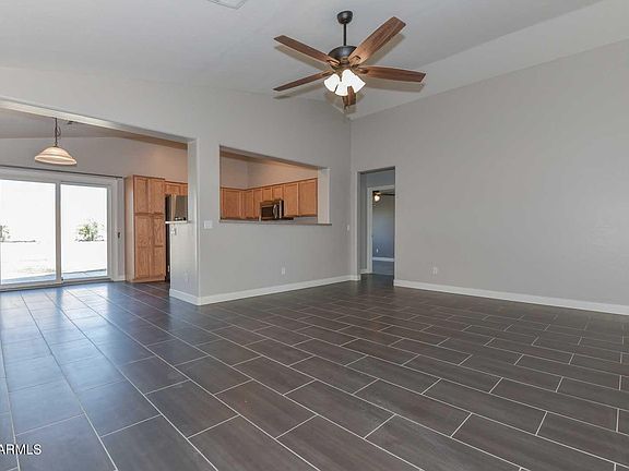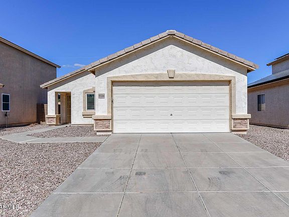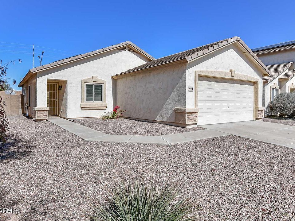 Move in ready single story 3 bed, 2 bath, 2 car garage with an open concept floor plan & eat in kitchen. Conveniently located in the community of Sundance! So many upgrades! New tile flooring, baseboards & interior paint throughout entire home just installed 2 months ago. In 2022 the refrigerator & dishwasher were replaced. In 2021 solar was installed & all windows (dual pane & low energy) & doors were replaced by Anderson. In 2020 the backyard patio was poured & toilets replaced. In September of 2019 new A/C was installed. Close to shopping & Sundance Park which is currently renovating with a 38-acre expansion. It will include a fishing lake with pavilion, splash pad, basketball courts & sports fields, and additional playgrounds, ramadas & restrooms along with their current features of a large, shaded playground, dog park, baseball & softball fields, a football/soccer field, four sand volleyball courts & a walking path. A new Costco is being built close by at the I10 & Verrado Way. Great location with easy access to the freeway!