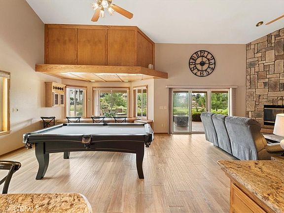 Nestled in the heart of the picturesque Canyon Lake community, this charming property offers a unique opportunity to experience the California dream. With a lifestyle defined by leisure and recreation, this home is a true gem. When you pull up to the home you will notice the stone paved driveway in front of the 3-car garage that extends to the front entrance and to both sides of the home. As you enter the home you are greeted by the open floor plan that incorporates a Dining room, Family room and a Kitchen with two islands. Adjacent to the kitchen is your very own recessed wet bar that opens via a window to your back yard, perfect for entertaining. The generously sized bedrooms are perfect for rest and rejuvenation, while the master suite provides a private sanctuary with its own ensuite bathroom and walk in closet. Other features include a separate laundry room with a ton of storage space and a sink. The stairs lead to a bonus room that can be used as an office, living room or even a bedroom as there is an attached cedar closet. The rear of the house opens up to the Canyon Lake golf course, so your view is phenomenal as you are overlooking the 14th, 15th and 16th hole!