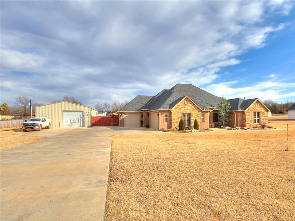 Everything a family could want in a home and more. This property is stunning! Just minutes from town on 1 acre. Immaculate one owner property with tons of upgrades. Desirable open concept with a warm & neutral color palette. Beautiful crown molding & woodwork, living room with gas fireplace. Kitchen with eat in dining room, breakfast bar, huge pantry, granite and stainless steel appliances. Master bedroom is spacious & offers an adjoining master bath with double sinks, walk in shower with rain showerhead, & soaking tub. Master bath adjoins the massive master closet with builtin dressers. 2 spacious bedrooms & full bath will accommodate the growing family. Upstairs bonus room with 1/2 bath. This space would be the ideal kids play room or 2nd living space also offers a home office. 30X50 barn with tons of concrete walkways to flow seamlessly from house to shop. Additional concrete driveway parking so no ugly ruts in the yard! Seller installed a home generator which remains. Call today!