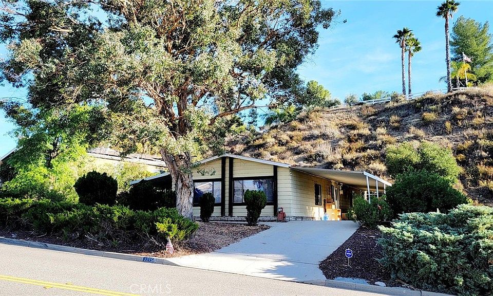 Affordable Living in Southern California really does exist! Welcome home to the guarded gated community of Canyon Lake and 22755 Skylink Drive! This beautiful private lot, on a hill with mature trees features 2 bedroom, two baths, 1440 sq ft. and has plenty of features to enjoy such as views of the golf course and mountains, surrounding community, and all the best that Canyon Lake has to offer! When you enter your new home, you will notice your living room offers an open and bright layout with a large kitchen dinette eating counter, loads of storage, beautiful lighting, that is a chef's dream. Your spacious master bedroom suite is perfectly updated with safe and easy access. There is also an additional bedroom with it's own en-suite bathroom with plenty of storage space. In the front of the home is a very large open concept living and dining room, perfect for entertaining or relaxing looking out your large windows to take in the beautiful Canyon Lake. Don't forget to enjoy grilling and entertaining on your covered Patio. This Resort living Community of Canyon Lake offers a low 1.1% tax base, 400 acre waterski/fishing lake, 16 parks, beaches, playgrounds, basketball, baseball, tennis & pickle ball, equestrian center, 18 hole golf course, pools, dog park, camp grounds, BMX pump track, golf cart friendly streets, water events such as the ski jumps and a slalom ski competition course, restaurants, community events and so much more! It really doesn't get any better than this!