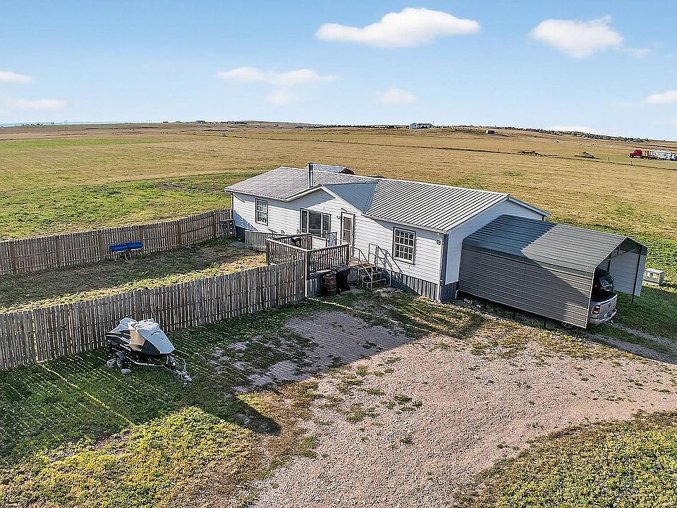 Listed by Henry Ulrich Ascend Realty 605-490-2040. NO COVENANTS!!! Welcome to 22759 155th Avenue where 31.2 acres of South Dakota prairie meet comfortable single level living. This 1998 Liberty double wide offers 1,512 square feet with three bedrooms and two bathrooms. The spacious layout includes an open kitchen and dining area, a bright living room, and a private primary suite. Step outside and you will find a carport along with two sheds equipped with electricity, giving you space for tools, storage, or hobbies. The acreage provides endless possibilities whether you are looking for room to spread out, a place for animals, or simply a peaceful setting to enjoy wide open views and quiet evenings. Located just minutes from Ellsworth Air Force Base and an easy drive to Rapid City, you get the convenience of town with the privacy of country living.