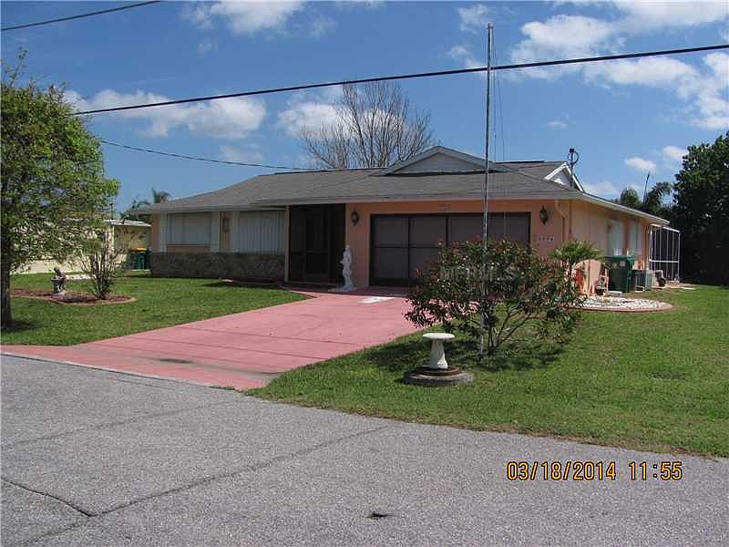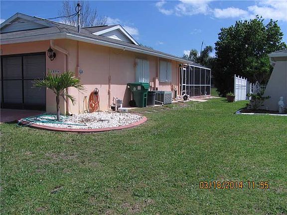 Very nice pool home on a freshwater canal but not in a flood zone. Very large dock on a wide canal which you can fish from or maybe launch a kayak or small boat. See the birds land and fish jump. Great curb appeal makes for a very pleasant and serene atmosphere. A large screened lanai and a 12x26 pool adds to the Florida lifestyle. The interior of this home which is almost 1300 sq ft has a lot of tile throughout except bedrooms which are rug. The home is equipped with accordion shutters if a storm should arise. Landscaping, which has plenty of trees as well as palms, adds to the beauty of the home. Do yourself a favor and call for an appointment to view!