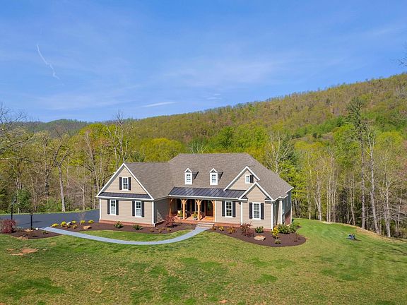 Privacy abounds on this 21 acre retreat in the back of Mountain Valley Farm less than 15 minutes to downtown CVille & both hospitals. No detail was overlooked in this nearly new custom home. The kitchen is a chef's dream w/ a double wide Subzero fridge, Wolf appliances, a huge walk-in butler's pantry, & a sweeping seamless quartzite island - all open to the great room w/ a showpiece picture window looking out at the mountain & stone fireplace w/ reclaimed wood mantle. Main level living- the owner's suite checks every box w/ a luxurious primary bath- custom tile, zero entry shower, heated floors, two large vanities & two walk-in closets w/ custom closet systems. Two additional bedrooms on the main level share a gorgeous hall bath w/ custom tile, quartzite counters, & a zero entry shower. Upstairs is a sprawling bonus room/bedroom, two walk-in closets w/ built-in systems, a full bath w/ custom tile & stone materials + additional storage. The basement is the ultimate escape or in-law space w/ 9' ceilings, an expansive rec room, dining space, bedroom & full bath, kitchenette, a hidden door leading to a secret room (think wine cellar), w/d hookups, & significant storage space. Ample outdoor entertaining spaces to enjoy the views!