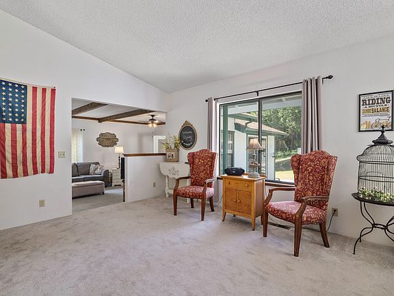 Welcome to your dream home retreat, nestled on 6.23 acres of picturesque landscape with a seasonal creek. Step inside to discover a light-filled living room that seamlessly flows into a charming dining area. Retreat to the generous master suite, boasting two closets for ample storage, while a beautifully remodeled guest bathroom serves the additional guest bedroom.