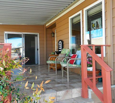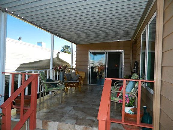 This pristine mobile home is located in Highlands Senior Mobile Home Park. This 2 bedroom 2 bath, plus den home has new dual pane windows, and large open floor plan. The kitchen offers a double ovens, stainless steel sinks with garbage disposal, tile counter tops and a dishwasher. Newer pellet stove and evap cooler. Lots of storage throughout. Large redwood deck off master bedroom, garden area, custom Italian marble tile on front porch and slate tiles in the back yard area. Two storage sheds.