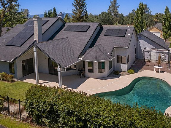 POOL and SOLAR with BATTERY BACK-UP! This home is located on Gold Hills Golf Course. It's beautifully landscaped in the front and back. Fifty-thousand dollar solar system installed just a few years ago. Exterior has been completely repainted and all 12 windows were upgraded in 2022. Master bath was just upgraded with a large beautiful shower. Heating/ air-conditioning was recently upgraded too. This home was made for entertaining. Large kitchen w/ island that overlooks the pool. Separate dining room and dining area adjacent to kitchen. Indoor laundry. Tons of storage throughout home. Two living rooms. Huge owners suite with slider door access to patio/ pool. Dip in your pool, step out the back gate to the golf course , or just relax. This home has it all and will go fast...