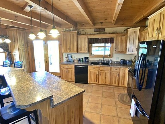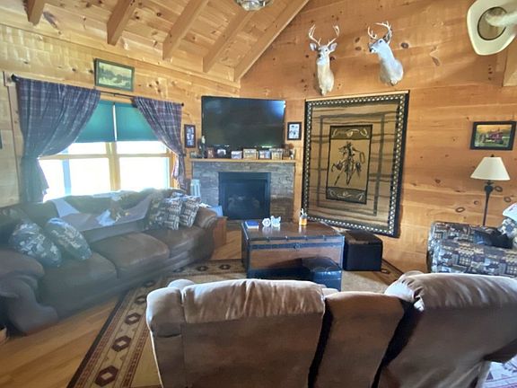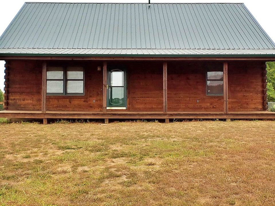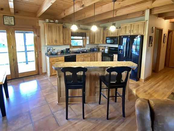 Custom built log home with stunning hilltop views of the 17 acres +/- includes open kitchen, living, and dining area, main level Master suite with walk-in tile shower, laundry room, and half bath. Upstairs is a large open loft and additional bedroom. Plus recently updated roof, 3-car garage, 2 outbuildings, land is partially fenced for horses, and a covered deck perfect for enjoying the outdoors.