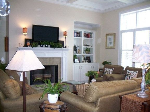 Lovely, custom-built home with many wonderful features. The terrific master suite includes a gas-log fireplace. Two BRs on 1st floor and 3 upstairs BRs, a bonus room and a 2nd bonus/multipurpose room are part of the ample living space. Mounted flatscreen TVs in LR & MBR stay with home. Large garage w/workbench area. Nice patio & back yard. Coffered ceiling in Great Rm w/fireplace w/gas starter.