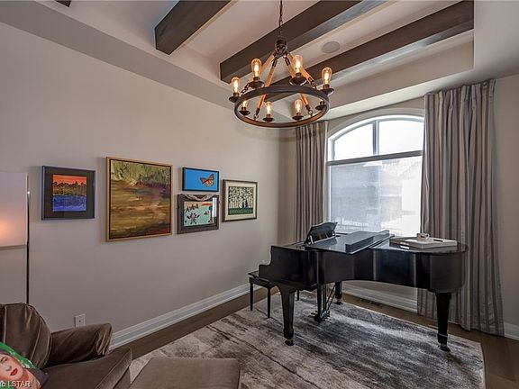 Gorgeous executive ranch with designer finishes & luxury upgrades in Upper Richmond Village. Former Greystone model home fronts on Torrey Pines making it ideal for parking & for guests. Timeless stone & stucco front facade w/ dormer window, arched covered front porch, shutters & paverstone driveway. Step inside the gracious foyer to glamorous living you can feel as you enter each room. Separate main floor office with beamed ceiling & a wall of built in library shelving - ideal for working from home or a quiet den. Custom gourmet kitchen features crisp, white ceiling-height cabinetry with wood/glass accent cabinets, impressive pendant lighting, stainless appliances, quartz surfaces & contrast tone, recessed wood, 3-seat island. Open concept Great Room combines Dining area & inviting Living Room showcasing a tray ceiling, gas fireplace w/ custom built ins/cabinetry & glass-surround temperature-controlled wine room. Garden doors lead to covered deck with glass/aluminum railing. Rich hardwood, pot lighting & built in speakers throughout. Master bedroom features coffered ceiling, upholstered feature wall, walk in closet & luxe 5 piece ensuite with beautiful tile floor, separate water closet, separate tub, glass/tile shower & double sinks. Impressive 3 piece main bath with custom tile work on floor and in shower. 2nd bedroom w/ dormer style windows. Main floor laundry adds more built in cabinetry & stackable washer/dryer. Fantastic finished lower level enjoys look out elevation & large above grade windows. Spacious multi purpose family room w/ gas fireplace & built in surround sound. Lower level guest bedroom features rich espresso wood detailed feature wall, high end carpet. Full 4 piece washroom w/ tile surround bath/shower & vanity w/rich granite counter. Luxurious lighting throughout. Sonos sound system. Vacant land condominium means you own the house & the land but landscaping, lawn maintenance, irrigation & snow removal are taken care of for you. $250/mo condo fee