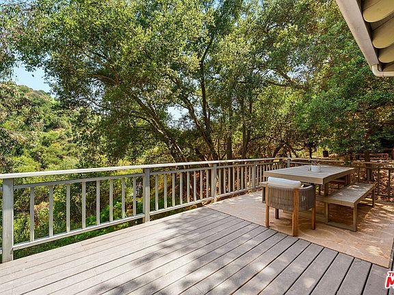 Welcome home, to your own gated, private Topanga sanctuary. Enter the gates and step into a realm of natural timeless beauty with this exquisitely crafted Cape Cod estate, where every detail has been curated to evoke warmth and harmony with nature. Gleaming wide-plank oak floors, soaring vaulted ceilings, and a flood of natural light create a sense of airy grandeur, while expansive picture windows and glass doors dissolve the boundaries between indoors and out. The culinary heart of the home is a gourmet chef's kitchen, appointed with premier stainless-steel built-ins, dual ovens, and artisanal limestone countertops, a space as functional as it is beautiful. The adjacent dining area, anchored by a showpiece fireplace, flows effortlessly to a sunlit deck ideal for morning lattes, intimate sunset dinners, or lively gatherings, with no neighbors in sight. The primary suite is a private retreat, boasting its own fireplace, generous custom walk-in closets, and a large en-suite bath complete with a deep soaking tub and serene garden views. On the lower level, two spacious guest suites share a luxurious full bath, complemented by a dedicated laundry room and a state-of-the-art infrared sauna; a haven for wellness and relaxation. Beyond the interiors, terraced gardens and manicured lawns unfold to reveal a seasonal creek and meandering woodland paths, offering moments of tranquility and natural beauty at every turn. Just minutes from Endless Color, Pine Tree Circle, The Valley, Malibu, and an abundance of scenic hiking trails, the setting is both connected and remote. An attached two-car garage with Tesla charging station ensures modern convenience, seamlessly integrated into this timeless retreat.