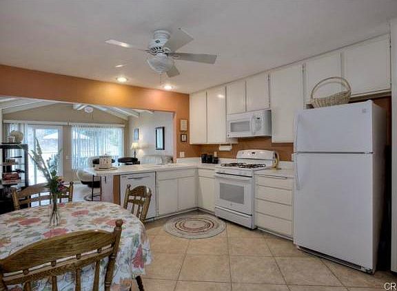 This 3 bedroom 2 bath home is in the desired Barcelona North neighborhood. The living room is welcoming with natural light, vaulted ceiling, and a traditional brick fireplace. The open concept kitchen is spacious with an eating area and a breakfast bar that opens into the family room. Wood beam cathedral ceilings accent the family room addition. Sliding doors open to a peaceful backyard with a large patio area and mature shade trees that offer privacy. The master bedroom has a walk-in closet and sliding doors that open to the backyard. Upgrades include newer air conditioner, dual pane windows and sliding doors, wood laminate flooring in the bedrooms, and 18" ceramic tile in the common areas. The laundry room connects the home to the 2-car garage. Location is convenient to Lake Mission Viejo, excellent schools, shopping, and neighborhood parks. Low property taxes, no Mello-Roos and the only HOA dues are for Lake Mission Viejo membership at $19/month. This home is ready for your personal touches and is priced to sell!