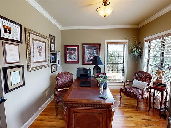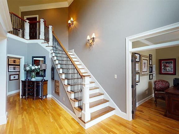 STUNNING home sitting on Hole #4 at Canebrake. Amenities galore in this custom built home. Soaring ceilings greet you as you enter with dining, study, and massive family room with double sided fireplace. Chef's kitchen has island, granite, cook top, gathering room, and butler' area and pantry. Master suite is oversized with golf hole view, bath has glass shower, tub and vanity. A GORGEOUS Winding staircase leads upstairs to 2 bedrooms, bath, and HUGE bonus/media room. Basement is perfect with 2 bedrooms, 2 baths, and large den with wet bar. Massive crown. 4 car garage, huge deck, part covered and part open for sunning. Large covered patio on the basement level. Wrought iron fence.