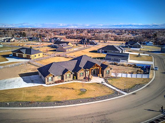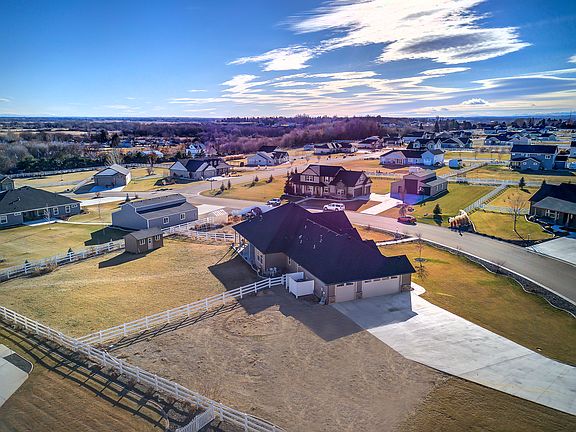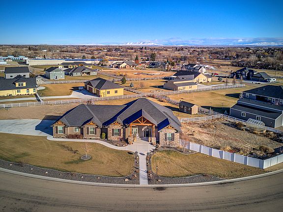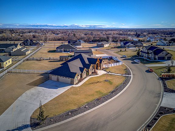 Stunning home located within Southwick Estates with partial views of the foothills and Bogus Basin. This home sits on a large acre corner lot in a quiet neighborhood, fully fenced and fully landscaped. Plenty of room for the addition of a shop. Engineered hardwood throughout the home, gorgeous granite countertops, and luxury kitchen appliances by Bertazzoni. Large master with ensuite and hidden closet/safe room. Incredible large hidden pantry in the kitchen. Gorgeous stone gas fireplace in the living room.
