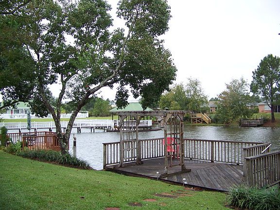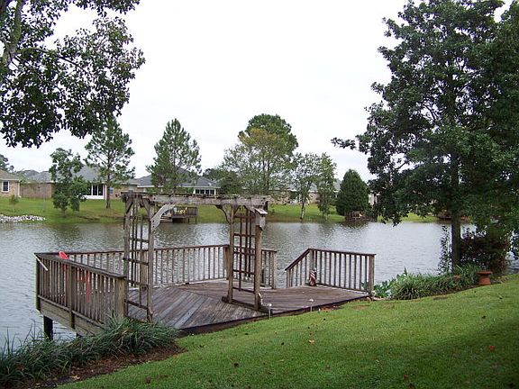 Well maintained,spacious Lake Front home in the Leisure Lakes Community is conveniently located close to the Club House and Gazebo.The home has a private dock,fabulous view thru two sets of triple windows across the back of the home,convection oven range,fire place, over size Master bath featuring Garden Tub and separate shower, plantation shutters thru out, gutters, storm doors, landscaped yard, sprinkler system, includes washer/dryer, refrig, very open floor plan. Convenient to Beach Express