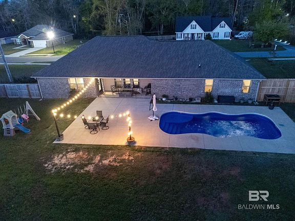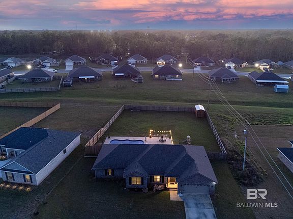 USDA Eligible Brick GOLD Fortified Craftsman Home Built in 2021, NEW Fiberglass 15’x31’ Salt Water Pool w/ Sun Lounger installed Oct 2022, NEW Concrete patio, Almost ½ Acre Level Lot with a Lemon Tree and 2 Garden Beds, NEW 6ft Fence w/ 8ft Fence around the pool for more privacy. NEW Graceland storage building custom size 8’x16’ so it can fit through the double 10 ft gate, NEW Storm Door. NEW Front/Back of the House Gutters, Home Backs up to the Common Area and easement to the right side of the house. NON HOA -Per Seller. 10ft ceilings in Main Living Area, Blinds on the energy efficient windows, LVP in Main Living area/Bathrooms with Carpet in Bedrooms plus Granite Throughout. Primary Suite is tucked in the back of the home with Tray Ceiling, NEW Custom Barn Door, NEW Jacuzzi Brand Extra Deep Bathtub installed, Double Vanities, private water closet, HUGE Walk in Closet and Freshly Painted. The kitchen features 2 toned countertops, Stainless Steel Appliances, a large pantry and opens up to the Living / Dining area. 2 Car Garage. .1 Mile from Community Pond with Dock, ½ Mile from Downtown Robertsdale & Honey Bee Park, 15 Minutes to 1-10, 40 Minutes to Beaches. This home qualifies for special no-lender fee financing. Schedule your showing today before it's sold.