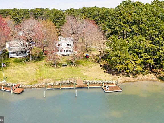 THIS IS THE EASTERN SHORE LIFE ! Designed by prominent local architect Pam Gardener and located at the end of a private road, this four bedroom getaway is combining all you are looking for in a perfect waterfront cottage. Open floorplan , wood floors throughout, water views from almost all rooms, wonderful waterside sunroom , waterside deck and a spacious deck at the entrance. Chill on the sundeck by the dock, enjoy crabs by the waterside picnic set under the trees or on one of the decks. There is a two car garage with space for additional storage , canoe rack and storage shed. The major renovation/addition was completed in 2001, the septic was replaced in 2001, crawlspace is encapsulated, new roof on roadside in 2019, new countertop in kitchen 2020, Bailey dock oversized in 2013 with floating dock and sun deck, new appliances and washer/dryer in 2020, new dishwasher 2/2022, new asphalt driveway. Conveniently located just a 10 min drive to St Michaels ; the closest public landing is a 5 min drive. INTERNET/CABLE SERVICE BREEZEWAY (formerly Atlantic Broadband). PLEASE DO NOT DRIVE IN WITHOUT AN APPOINTMENT !