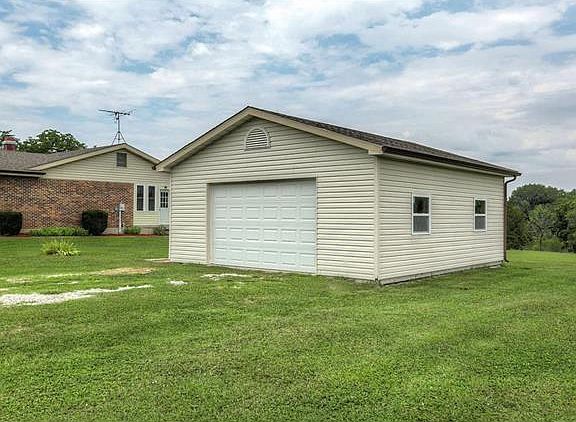 WANTED: those who would love a peaceful, country property. Mature trees, open spaces, a 15 acre, stocked lake (Lots of Bass & Catfish!) in your backyard. Imagine dropping a line in or kayaking across the lake whenever the mood strikes! The home-a solid, brick ranch w/ large front yard & walk-out lower level has much to offer. W/ 3 bedrooms, 3 ½ baths, & partially finished lower level w/ huge sleeping area, full bath, & kitchenette, thereâs plenty of space for everyone. Enter your home to a living room (full brick fireplace) & office space, formal dining room w/lovely natural light, a spacious eat-in kitchen, & lots of cabinets. The insulated 3-season room will be a favorite to relax in through most the year. Plenty of storage too- youâll find use for an additional detached garage & well-organized lower-level storage room. Nature lovers, fishers, the fitness minded, & those longing for a quiet, country estate will love this property. Enjoy the clean country air, & make it yours today!