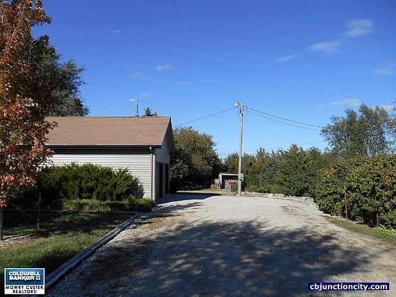 This property offered for sale by Coldwell Banker Mowry Custer, Realtors. For more information contact Listing Agent: Lance Custer at 785-762-4663. One of a kind country home. This home was originally built in approximately 1930 but has had very nice additions and offers great spaces both inside and out. There is a large living room with fireplace, dining area and additional office/craft room. This kitchen looks fantastic w/oak cabinetry, tile backsplash and tile floors. The large laundry room is convenient & updated as well. The master bedroom offers a huge bathroom and closet and was updated in 2009. There are 3 bedrooms and a bathroom upstairs. Outside you'll find a large building, attached 2 car garage, lots of fruit trees and fabulous shade trees. All located on 2 acres. There is blacktop to the driveway.